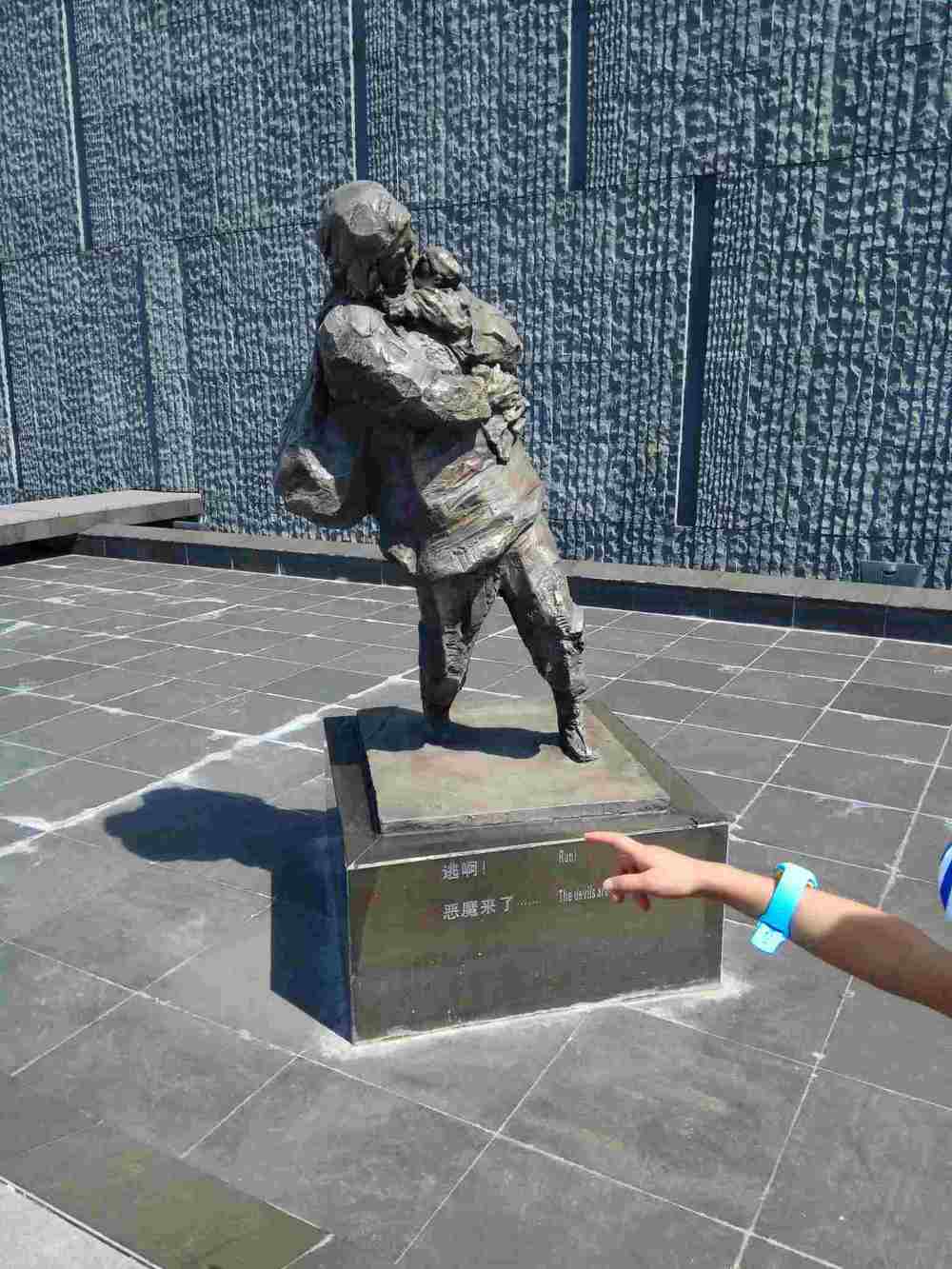走近纪念馆,外墙右侧是一组暗褐色的雕塑,有幼小的孩子被惨杀,惊慌的母亲紧紧抱着儿子,儿子拉着年迈的老母逃难……,心情顿时沉重起来,行走的人流肃静有序,很少听到谈笑声