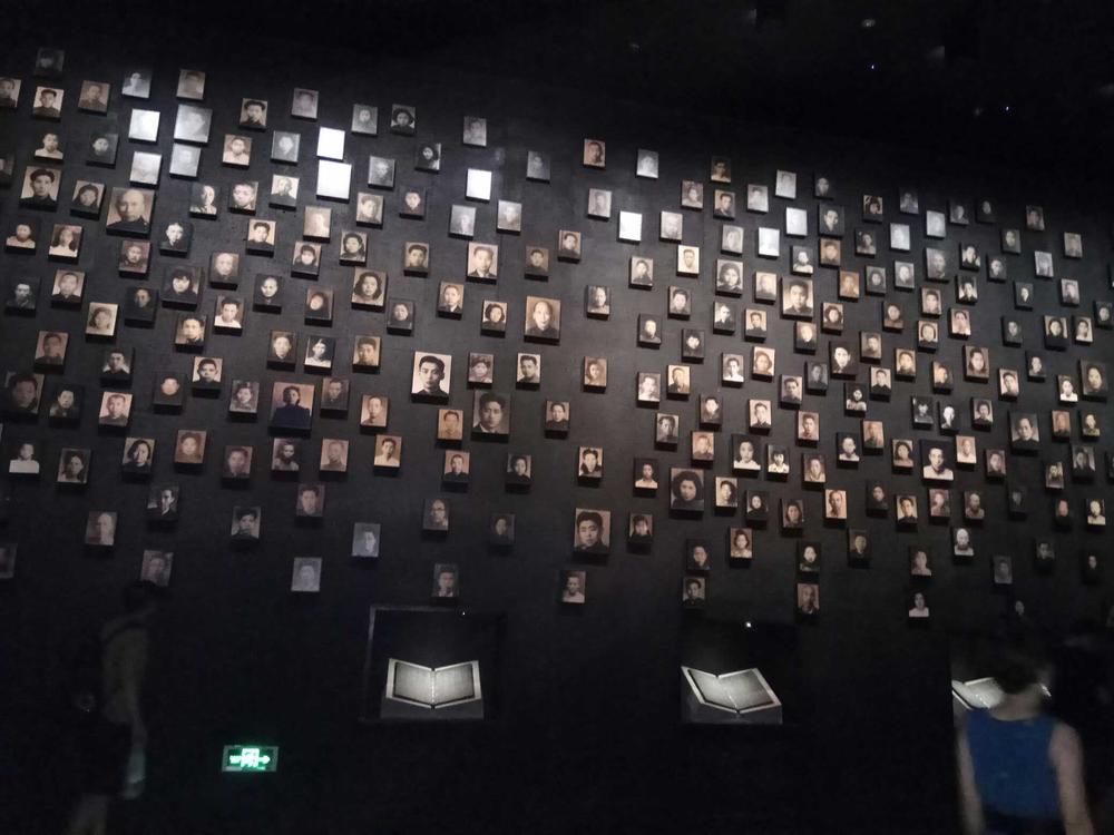 史料陈列馆最后,幽暗的墙壁布满死难者的照片,令人心里充满了说不出的愤懑,想深深呼几口气才能稍稍平复一点。