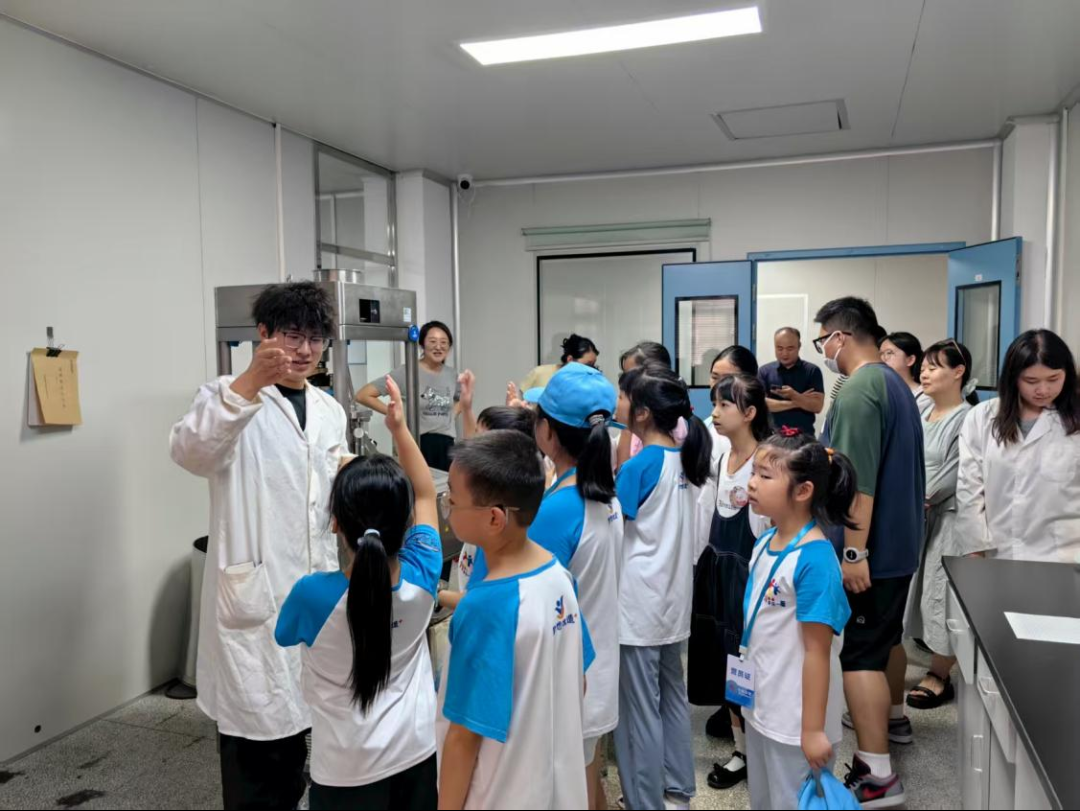 带着浓厚的兴趣,孩子们分组深入企业核心区域实地探访,在智能化药品库房,孩子们见识了自动化管理系统如何高效、精准地管理海量药品;在精密制剂车间,孩子们透过参观走廊,观察药品在现代化流水线上的生产流程,感受科技的力量;在前沿研发实验室, 在专业人员引导下,孩子们近距离接触精密仪器,了解新药研发的严谨与创新,认真聆听讲解,兴奋地在特色打卡点记录见闻。