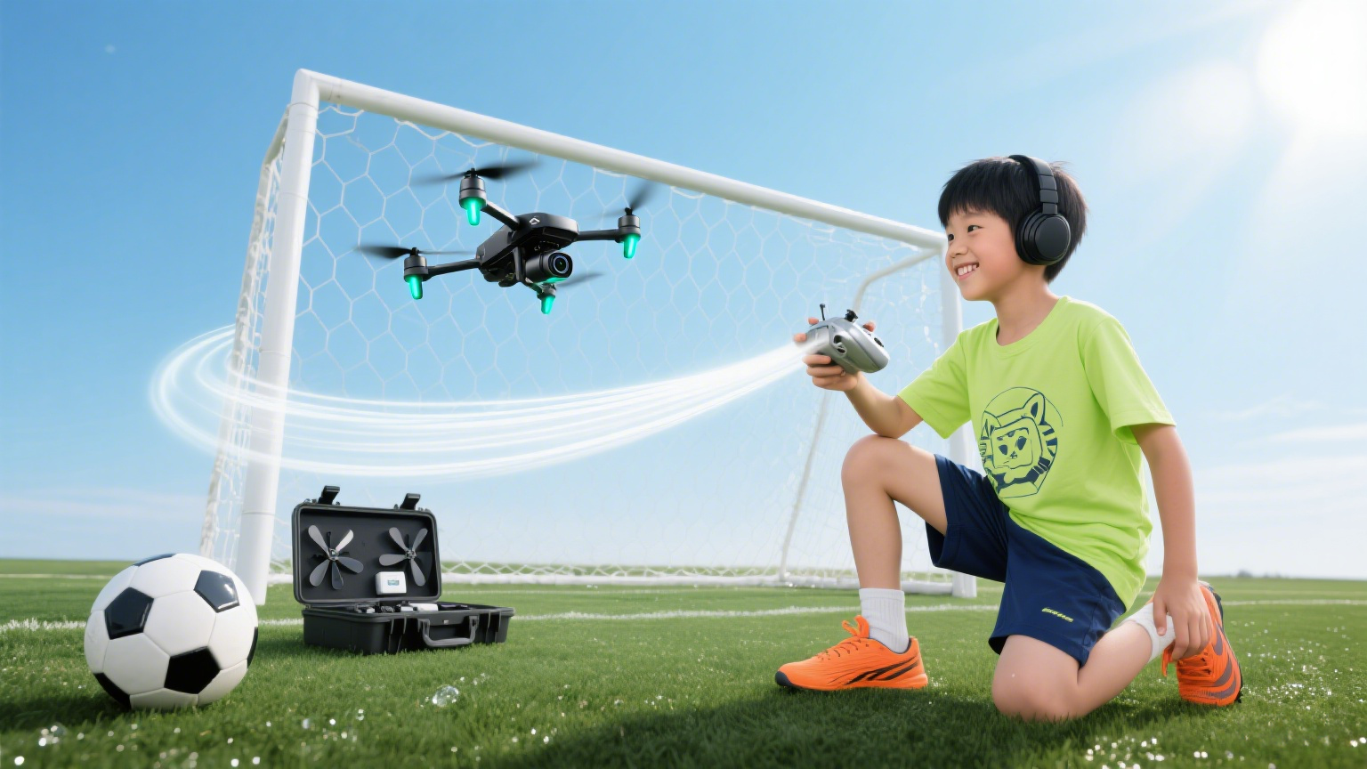 更令人耳目一新的是,区关工委联合区科协精心举办“无人机科技足球挑战赛”。这是区关工委“借台”引入创新元素、拓展青少年暑期实践视野的又一妙笔。在区科协专业老师的指导下,孩子们操纵无人机轻盈起飞,目标直指特制的“球门”。只见一架架无人机灵巧地穿梭、爬升、俯冲,孩子们屏息凝神,小心翼翼地调整角度和速度,力求在最短时间内完成最多次的“穿越球门”挑战。每一次精准穿越,都伴随着孩子们兴奋的欢呼。区关工委与区科协的此次联动,将前沿科技引入传统体育活动,锻炼了孩子们手眼协调、空间判断和专注的能力,更在他们心中播下探索科技、拥抱创新的种子,也为青少年多元化发展开辟了趣味盎然的实践路径。
