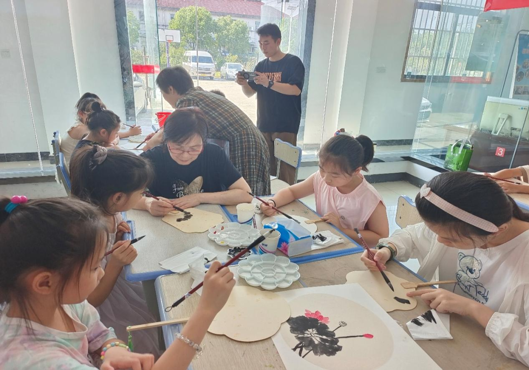 另一边,绘画老师张英、顾云霞等现场创作水墨画扇,逐步引导孩子们领略水墨画的独特魅力。在老师的指导下,孩子们屏气凝神,耐心临摹、认真创作,进一步加深了对书画艺术的了解,真切领略到书法与绘画的独特魅力。