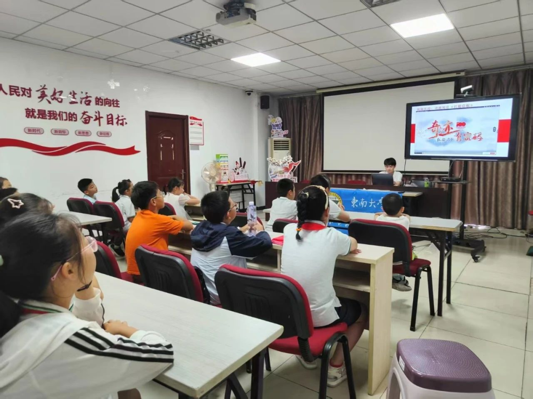 活动伊始,孩子们在实践团成员的引导下井然有序地落座,现场洋溢着浓厚的学习围。随着动画短片《红船启航》的播放,其生动鲜活的画面和浅显易懂的讲解,将中国共产党的诞生、抗战的烽火岁月以及这些历史事件的深远现实意义,清晰地呈现在孩子们眼前。孩子们全神贯注地凝视着屏幕,时而紧握小拳头,时而发出惊叹声,仿佛穿越时空,亲身置身于那段波澜壮阔的革命历程之中。