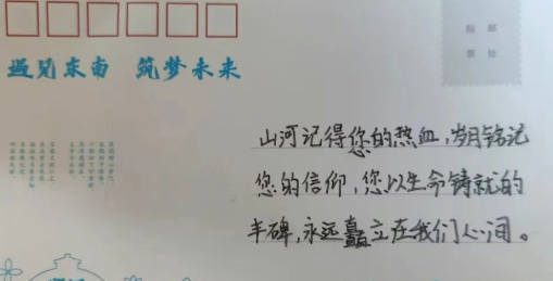 实践团成员为每位孩子发放了精美的明信片。纸短情长,孩子们在明信片上郑重地写下“给烈士的一句话”(见上图),或表达敬意、或诉说感恩、或立志传承。稚嫩的笔触承载着他们对先烈的深切缅怀与崇高敬意。活动现场,孩子们或低头沉思,或相互交流,每一张明信片都凝聚着他们对红色精神的独特理解。此外,多名同学还精心准备了英雄事迹的故事,为大家带来了精彩的分享。