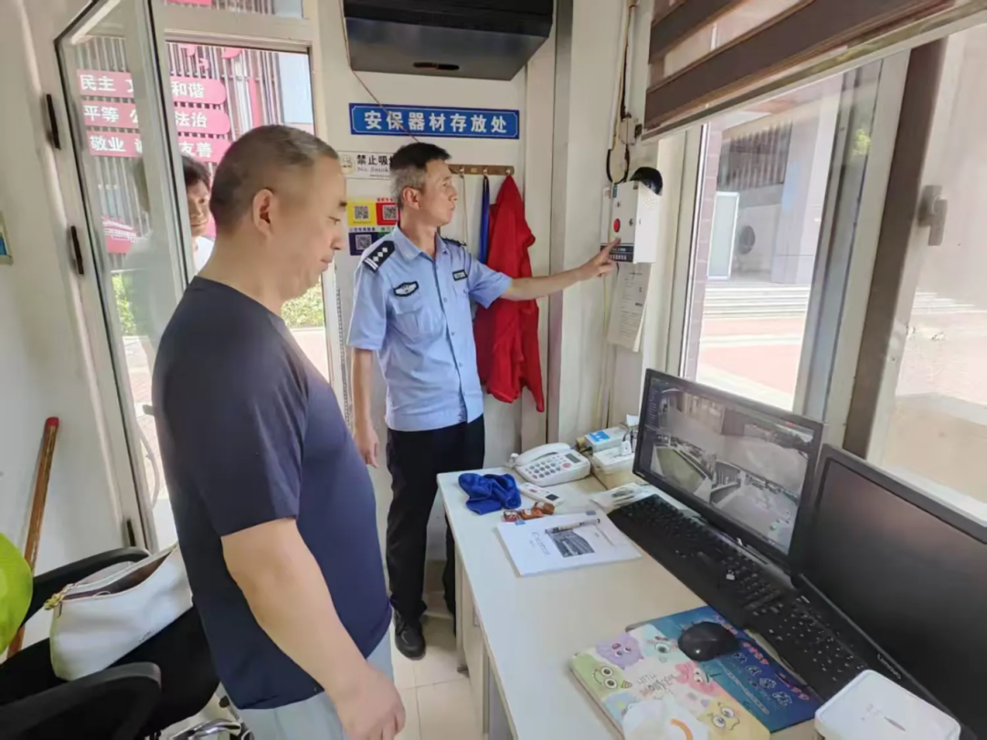 龙潭派出所关工站副站长陈继祥及社区民警杨仕平前往社区和学校,开展暑期校园安全检查活动。他们对重点区域的人员值班值守、消防设施、防爆器材及监控视频等进行了细致检查,进一步强化人防、物防、技防措施,夯实安全责任,筑牢安全防线,确保暑期孩子们拥有一个良好的成长环境。