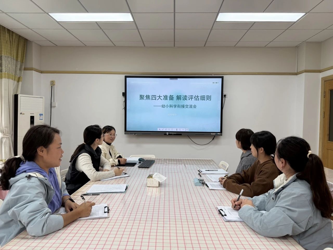 2025年10月30日,江苏第二师范学院附属红星街幼儿园召开新学期第二次幼小衔接专题交流会,大班全体教师及小中班年级组长齐聚会议室,在保教主任俞春花带领下共研衔接工作。