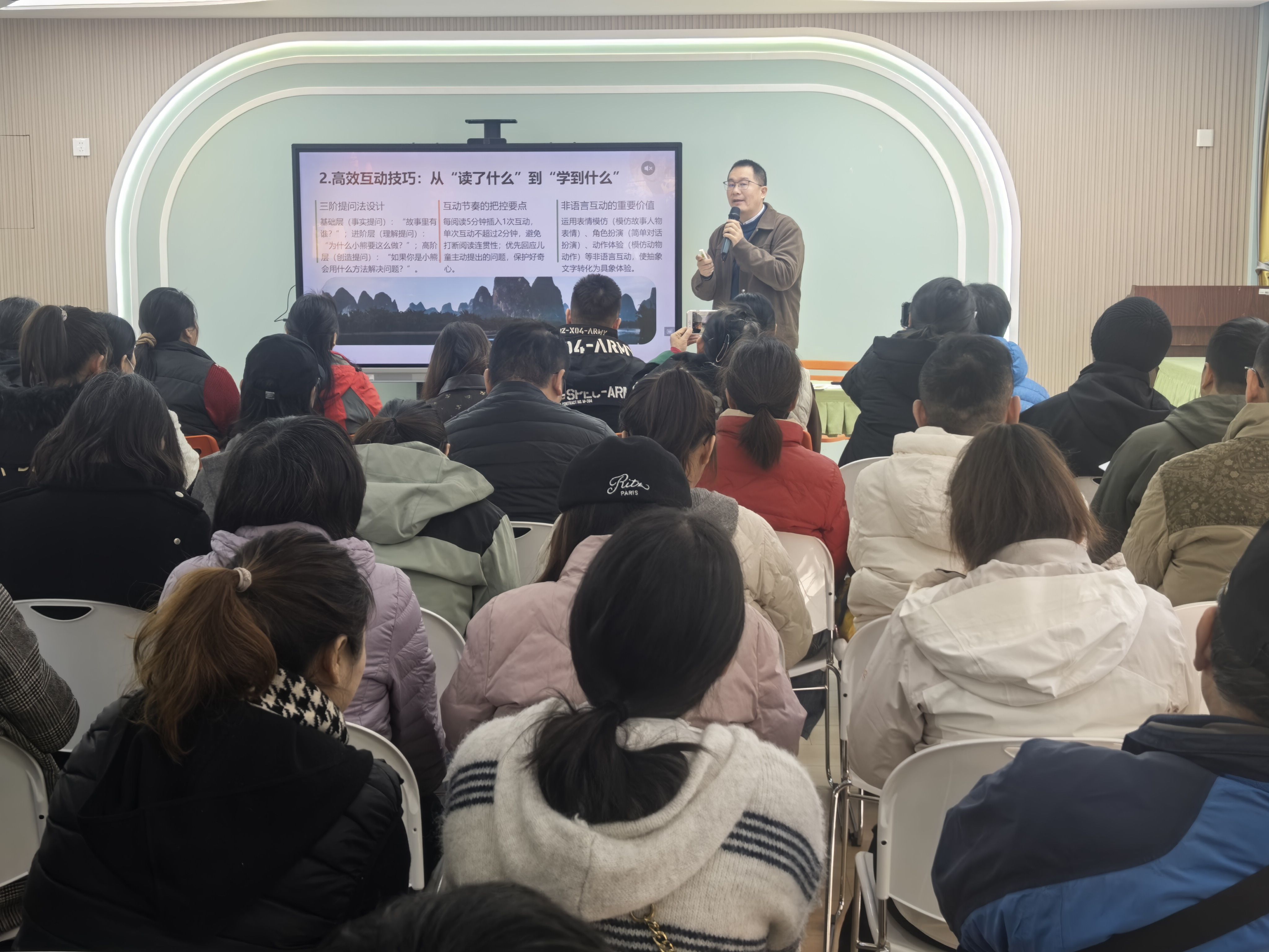 “孩子读绘本只看图画不看文字,需要纠正吗?”“大班孩子识字量少,会影响深度阅读吗?”……互动提问环节,家长们踊跃举手,抛出育儿中的困惑。
