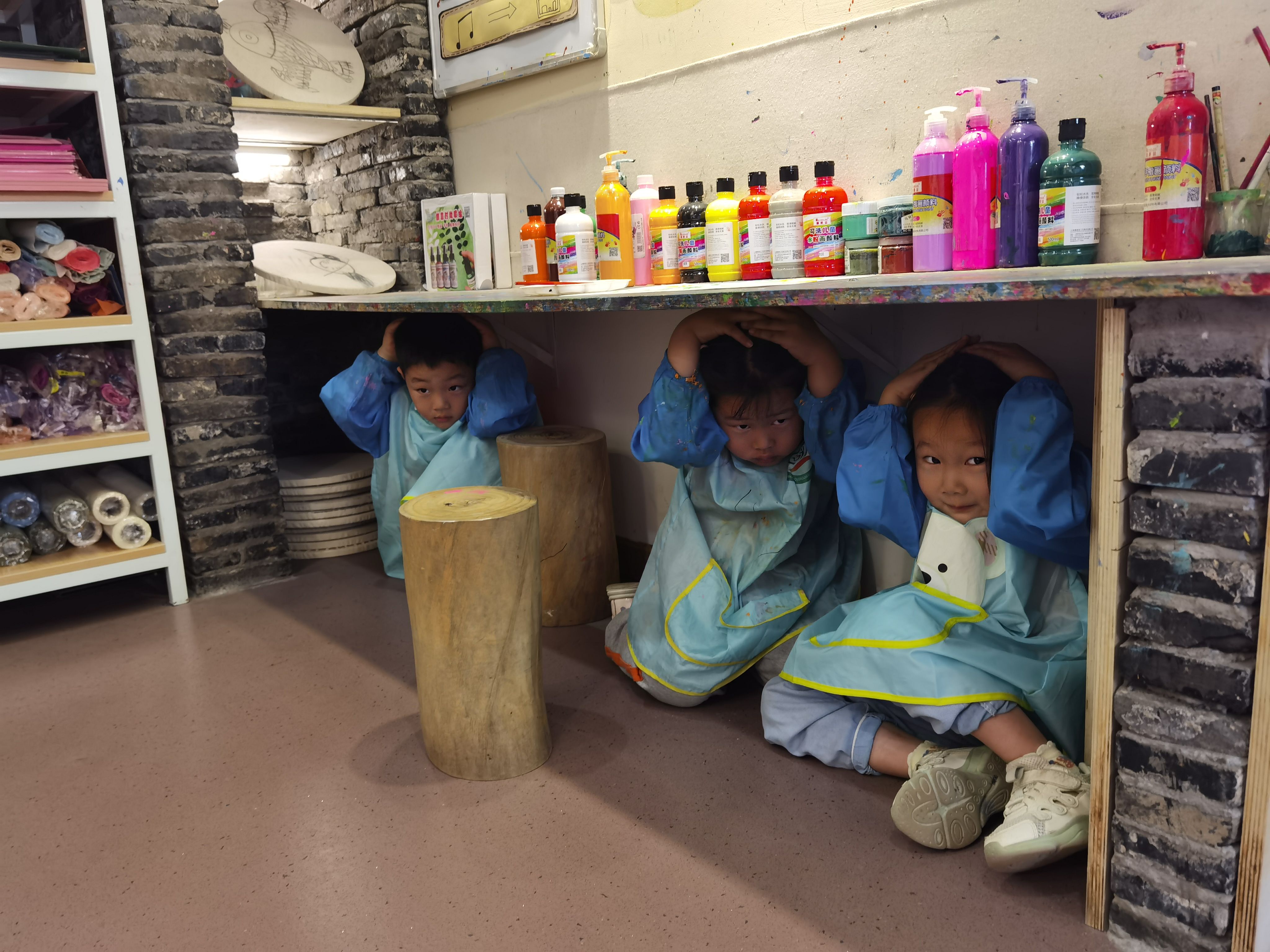 随着第一声警报声骤然响起,防震减灾突击应急疏散演练活动正式拉开帷幕。听到警报声教师们立即做出反应,停止一切活动,迅速组织幼儿双手护住头部,降低重心,快速躲避到墙角、桌下等安全区域,进行紧急避险。待“震感”停止时,各班老师迅速组织幼儿按照规定的逃生路线,双手护住头部,微微弯腰快步前行,快速有序地向空旷的安全地带撤离。