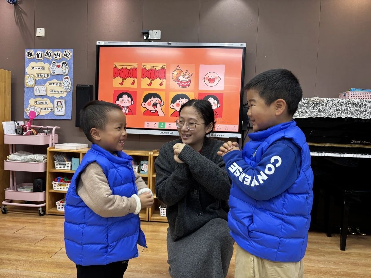 活动伊始,教师们通过抽签弹唱、齐唱经典歌曲暖场,随后观摩了《捏面人》《堆雪人》《新年到》三堂歌唱教学课。执教教师分别以京剧片段、故事讲述、手偶互动导入,融入游戏、角色扮演等多元形式,让幼儿沉浸式感受音乐魅力。