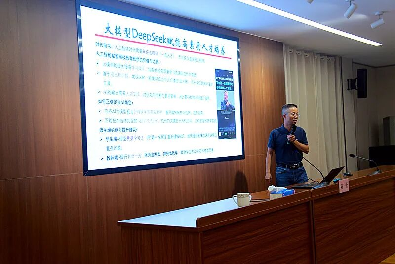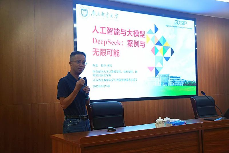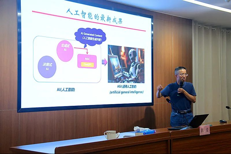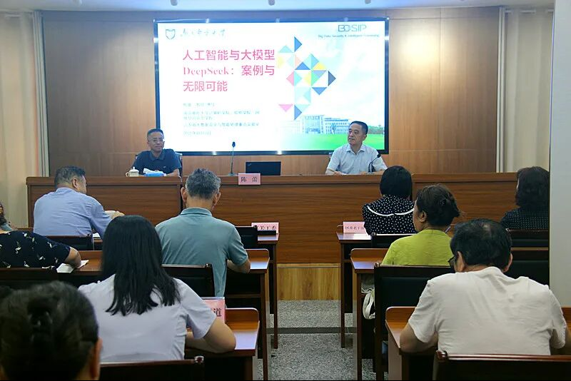 本次讲座特别邀请南京邮电大学计算机学院教授、博士生导师陈蕾担任主讲。陈蕾老师围绕“人工智能与大模型Deepseek”的应用展开讲解,他引用了大量的国内、外人工智能资料,借助PPT展示和视频播放的形式,生动细致地为在场人员介绍了人工智能的定义及其发展历程、大模型与Deepseek现状分析、未来发展趋势展望,以及人工智能面临的挑战与机遇探讨等方面的内容。他还通过对大模型与Deepseek的现状进行了深入分析,探讨了人工智能面临的挑战与机遇,并对其未来发展趋势作出了展望。