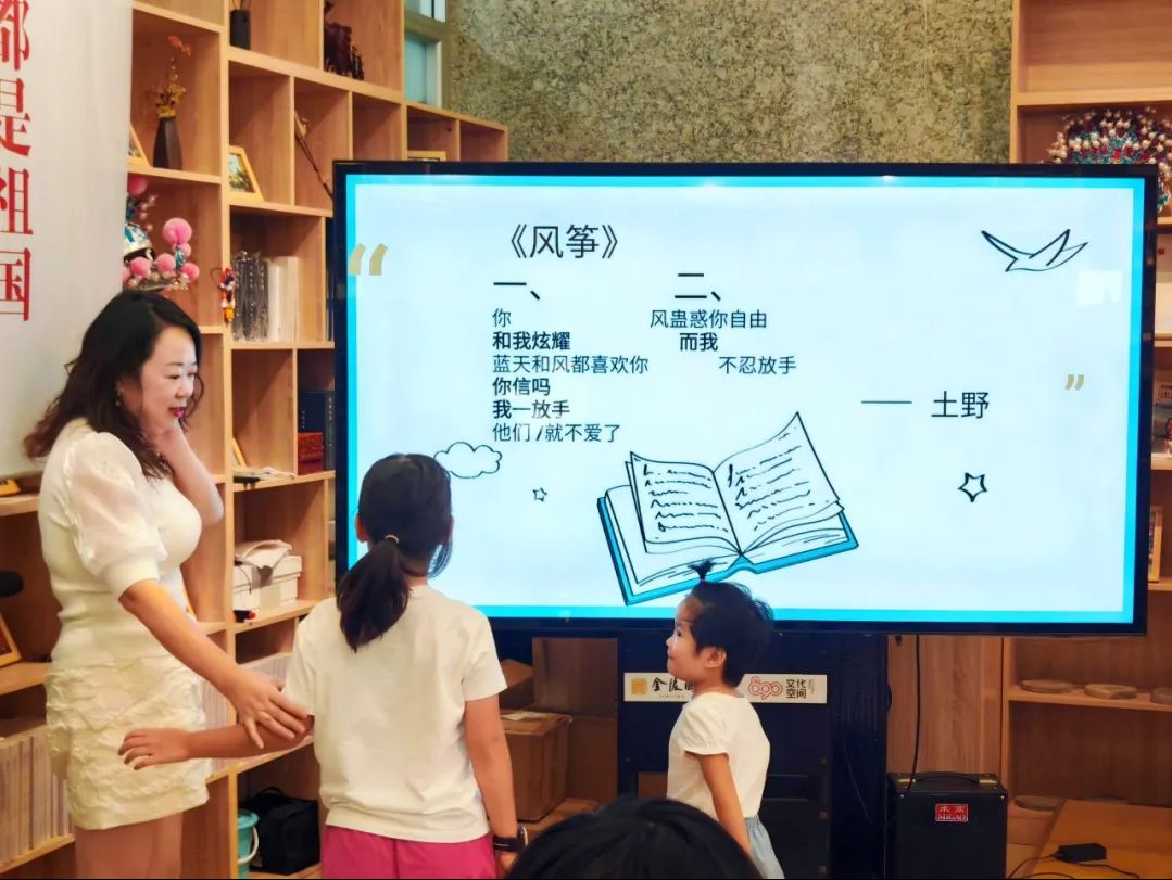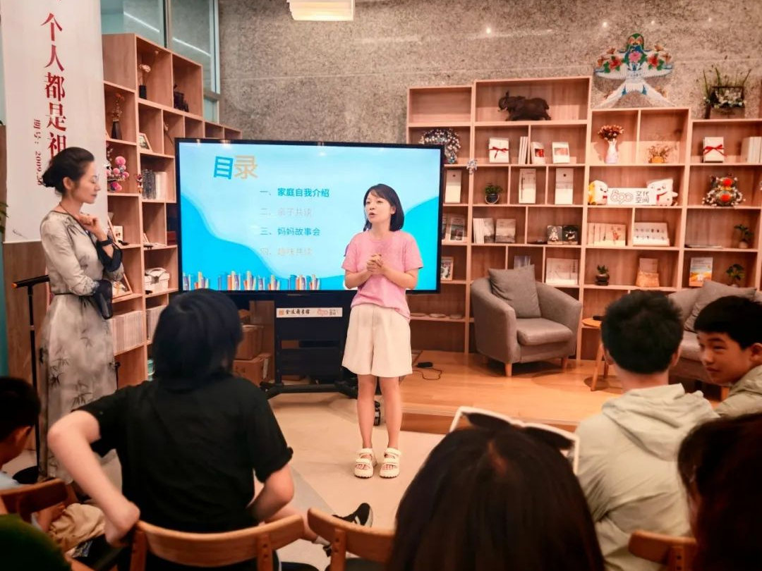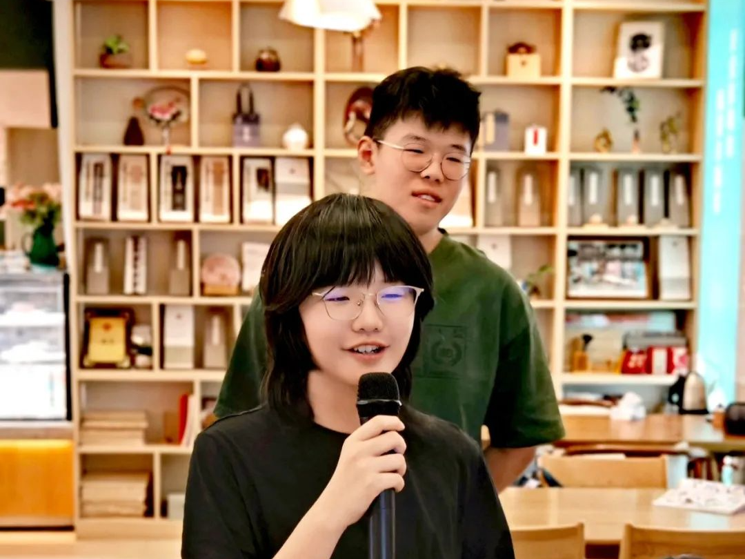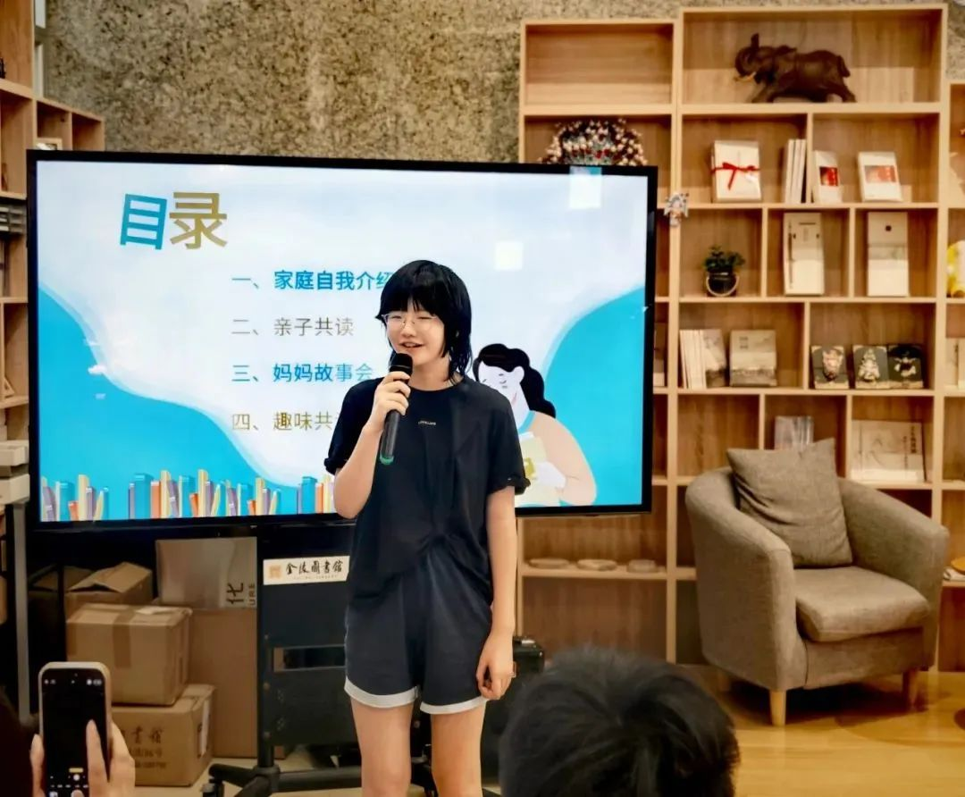 她深情地介绍了儿子在诗歌创作上的才华与感悟,并特别邀请了现场家庭上台进行亲子共读。当父母与孩子并肩而立,共同诵读那些充满想象力与少年心气的诗句时,现场洋溢着浓浓的亲情与艺术感染力。为了鼓励孩子们对阅读和创作的热爱,张明还为参与共读的家庭精心准备了奖品。这个环节不仅让与会者沉浸式地感受了诗歌的魅力,更是一次关于理解、陪伴与鼓励下一代成长的生动示范。