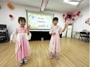 结业表演环节成为孩子们展示自我的舞台:杭昱垚的吉他弹唱《风吹麦浪》《你知道我的迷惘》悠扬动人,王梓妤的独唱《小美满》清甜治愈,刘雨晗与徐宇澄的双人舞《胭脂妆》灵动柔美。左思羽的竖笛演奏《欢乐颂》旋律悠扬,最令人惊喜的是全体学员合唱《蹦蹦跳跳》时,现场瞬间化作欢乐的海洋,孩子们用歌声传递着对暑托班的不舍与对未来的期待。