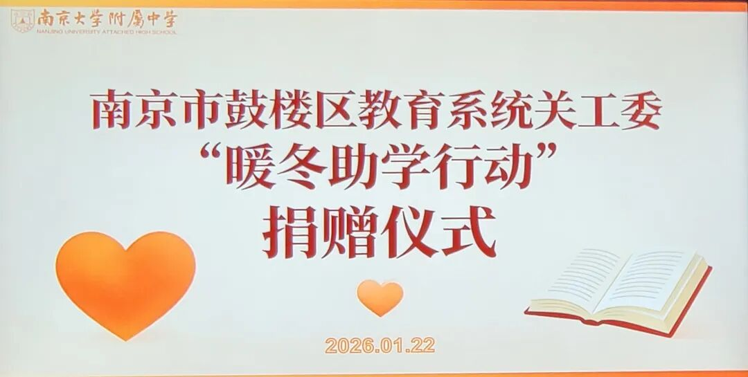 岁末冬寒,爱心传暖。为深入践行关心下一代工作使命,精准帮扶与助力青少年的求学成长,近日,南京市鼓楼区教育系统关工委“暖冬助学行动”捐赠仪式在南京大学附属中学的初中部温情启幕。本次的“暖冬助学行动”聚焦鼓楼区内17所中小学138名学生,以助学金与御寒用品为载体,将党和社会的关怀送到学子心坎,为他们的逐梦之路注入温暖力量。