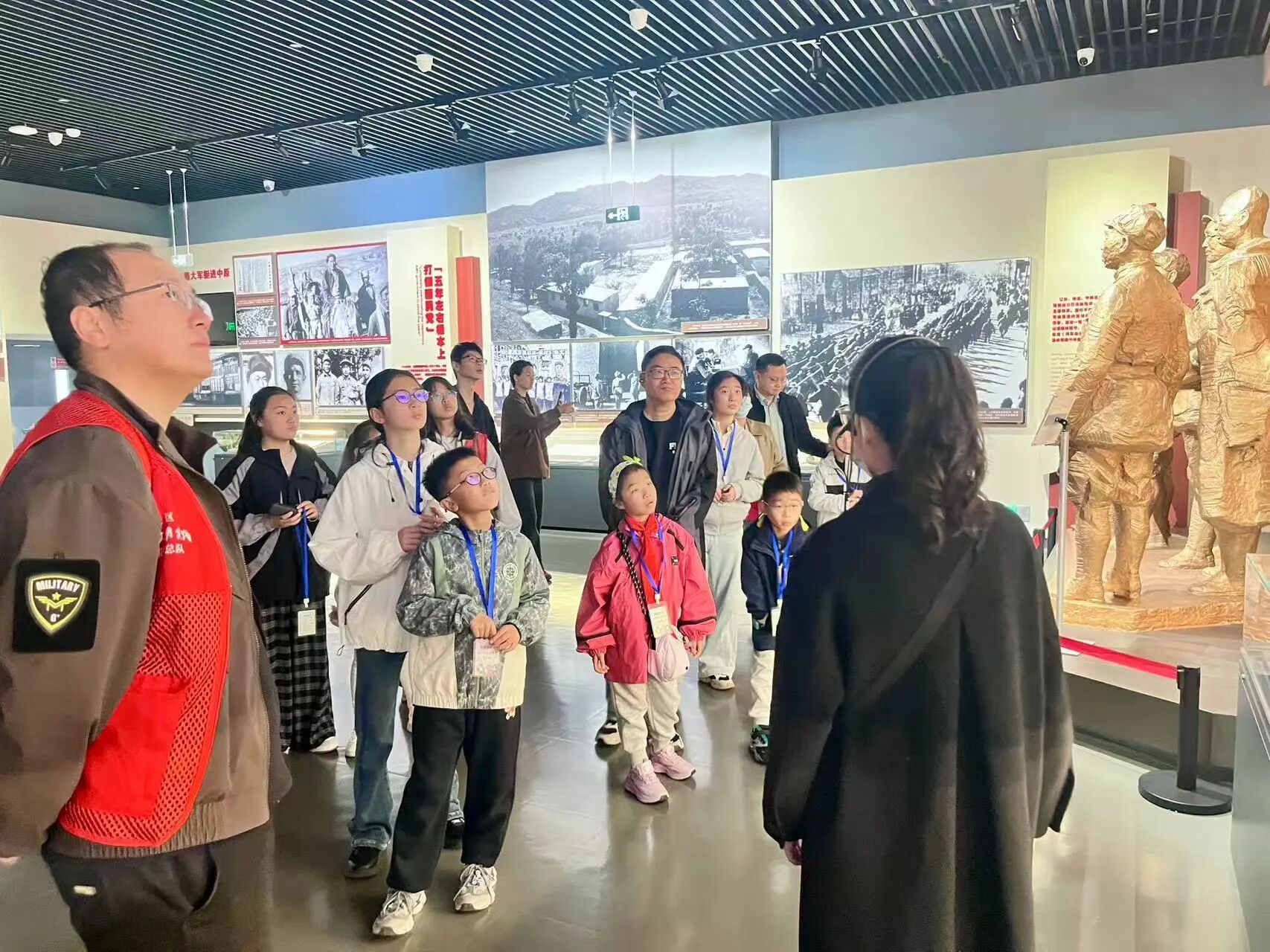 参观途中,家长与孩子并肩驻足、轻声交流,孩子好奇地提问,家长耐心解答,亲子双向互动让红色学习从“被动听”变为“主动悟”,让春假时光在温情陪伴中更有厚度。孩子们步履铿锵、凝神聆听,在历史图片与珍贵文物前接受红色洗礼;家长们借研学契机与孩子共忆历史、共话家国,让红色基因在亲子交流中代代相传。