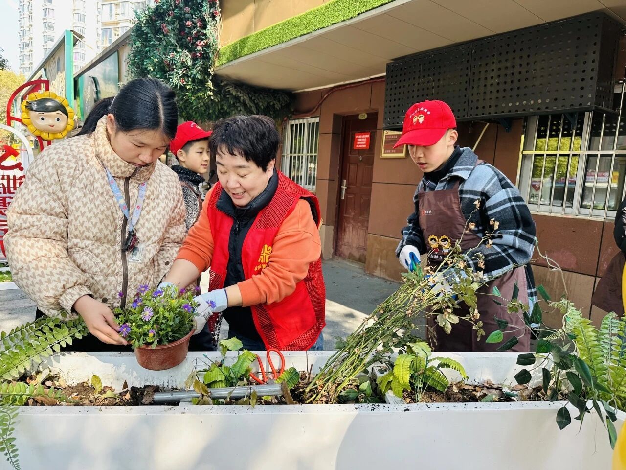 讲解结束后,“五老”志愿者与孩子们大手牵小手,分组来到“桂香园”和“37度街区”。平日里慈祥的爷爷奶奶们此刻化身为“种植导师”,手把手教孩子们挖坑、培土、浇水。孩子们则像欢快的小鸟,小心翼翼地捧着花苗,用稚嫩的小手为家园增添新绿。现场忙碌而有序,笑声与铲声交织,构成了一幅动人的春耕图。