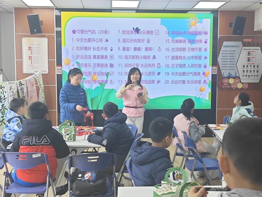近日,沙洲街道中奥社区关工委在社区校外辅导站开展了一场别开生面的“春日寄愿·青团传情”青少年心理健康主题活动。活动将传统民俗文化与心理关怀深度融合,让二十余名青少年在指尖的揉捏与笔尖的书写中,完成了一次与自我对话的成长之旅。