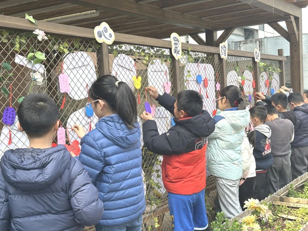 最动人的一幕出现在屋顶花园。孩子们在木质许愿牌上写下对自己的鼓励、对未来的期许,然后郑重地系上麻绳,挂在风中。那一刻,仪式感赋予了心愿力量,也让孩子在书写中完成了情绪的整理与释放。