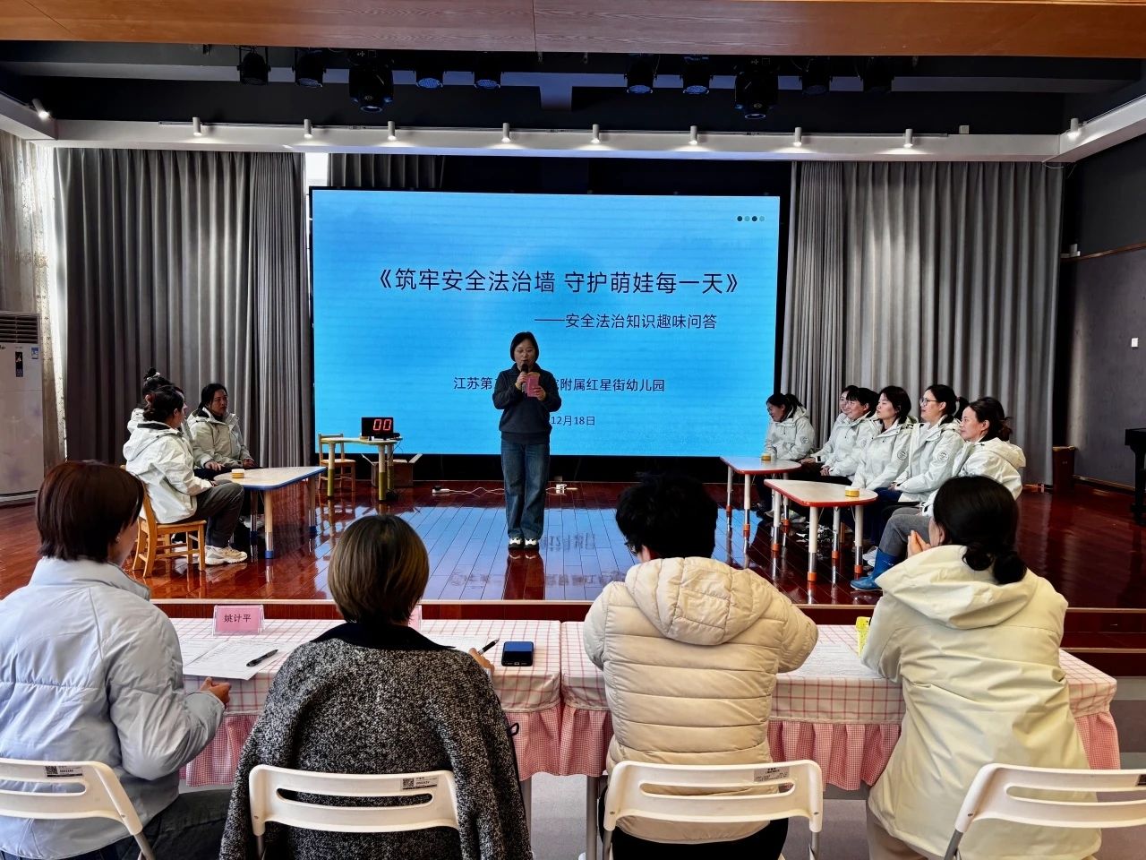红星街幼儿园开展后勤人员安全法治知识趣味问答活动为强化后勤人员安全法治意识,明确岗位职责与法治红线,提升应急处置能力,12月18日下午,江苏第二师范学院附属红星街幼儿园开展后勤人员安全法治知识趣味问答活动,将安全法治工作融入日常管理。
