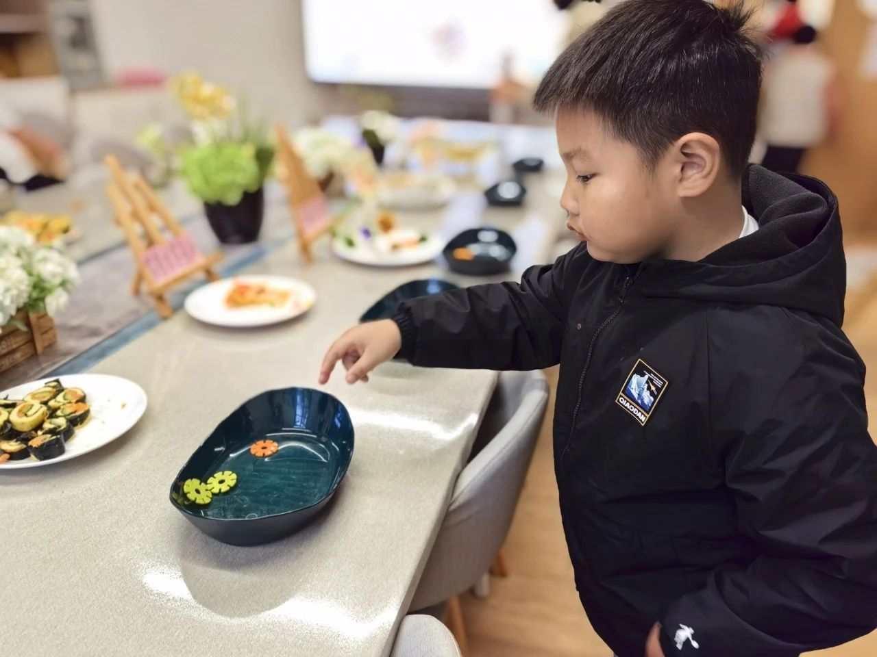 品尝环节,孩子们化身“小小品鉴官”有序取餐,认真品尝每道美食,满足的笑容是对厨艺的最佳肯定。投票环节,“小小投票员”们依据喜好郑重投票,表达对心仪菜品与点心的喜爱。